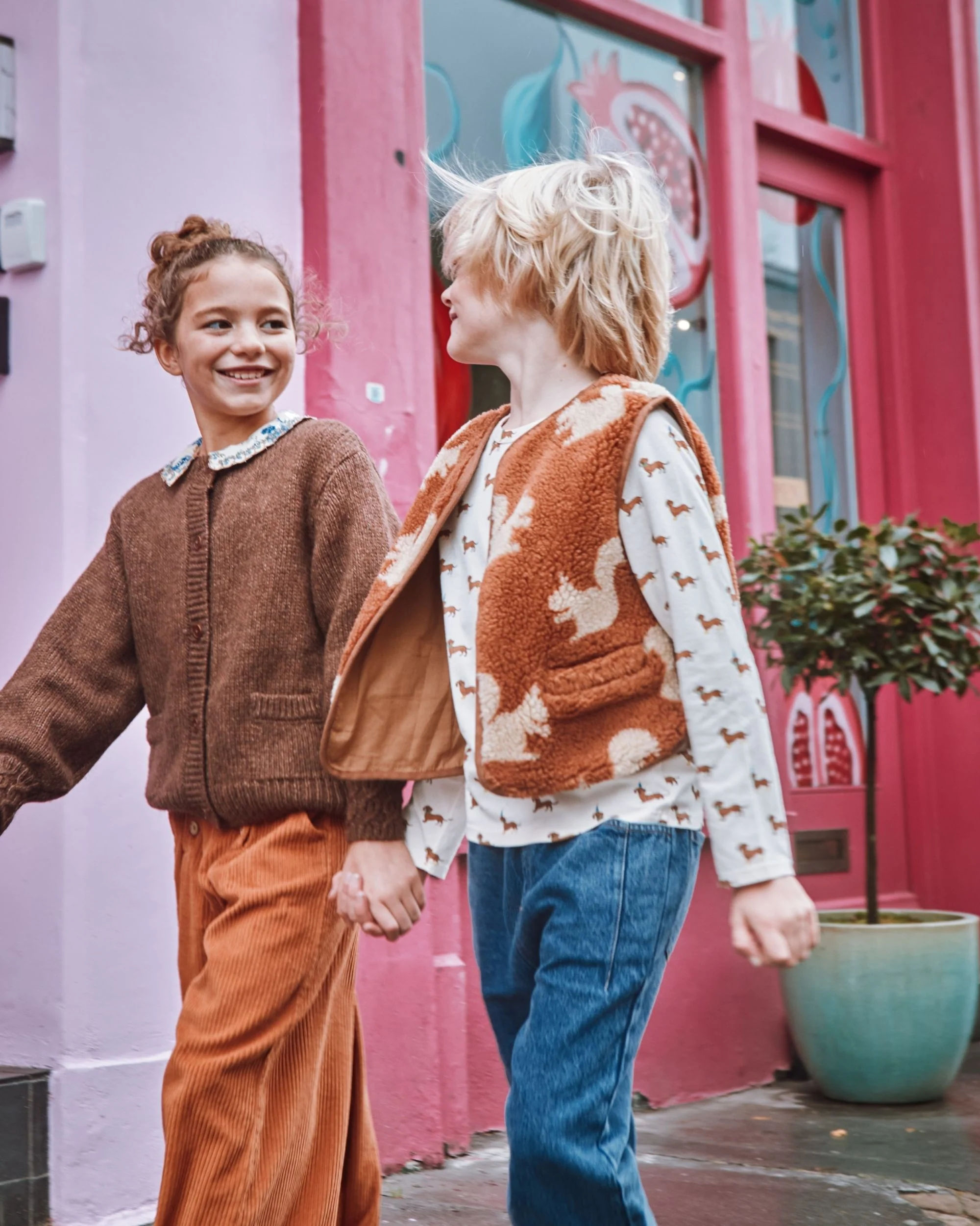Tee-shirt en jersey de coton biologique écru imprimé de teckels caramel à bottes jaunes, nœuds papillon verts et chapeaux pointus bleus. C’est la fête chez les teckels ! – Coupe droite – Finitions en bord-côte autour de l’encolure ronde – Manches longues – Finitions ourlées et surpiquées aux poignets et autour de la base Un […]
