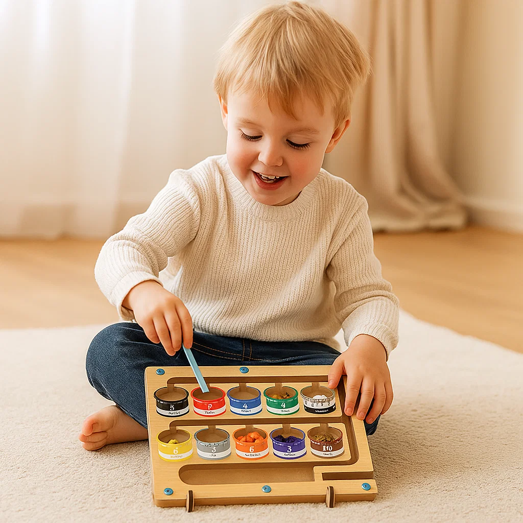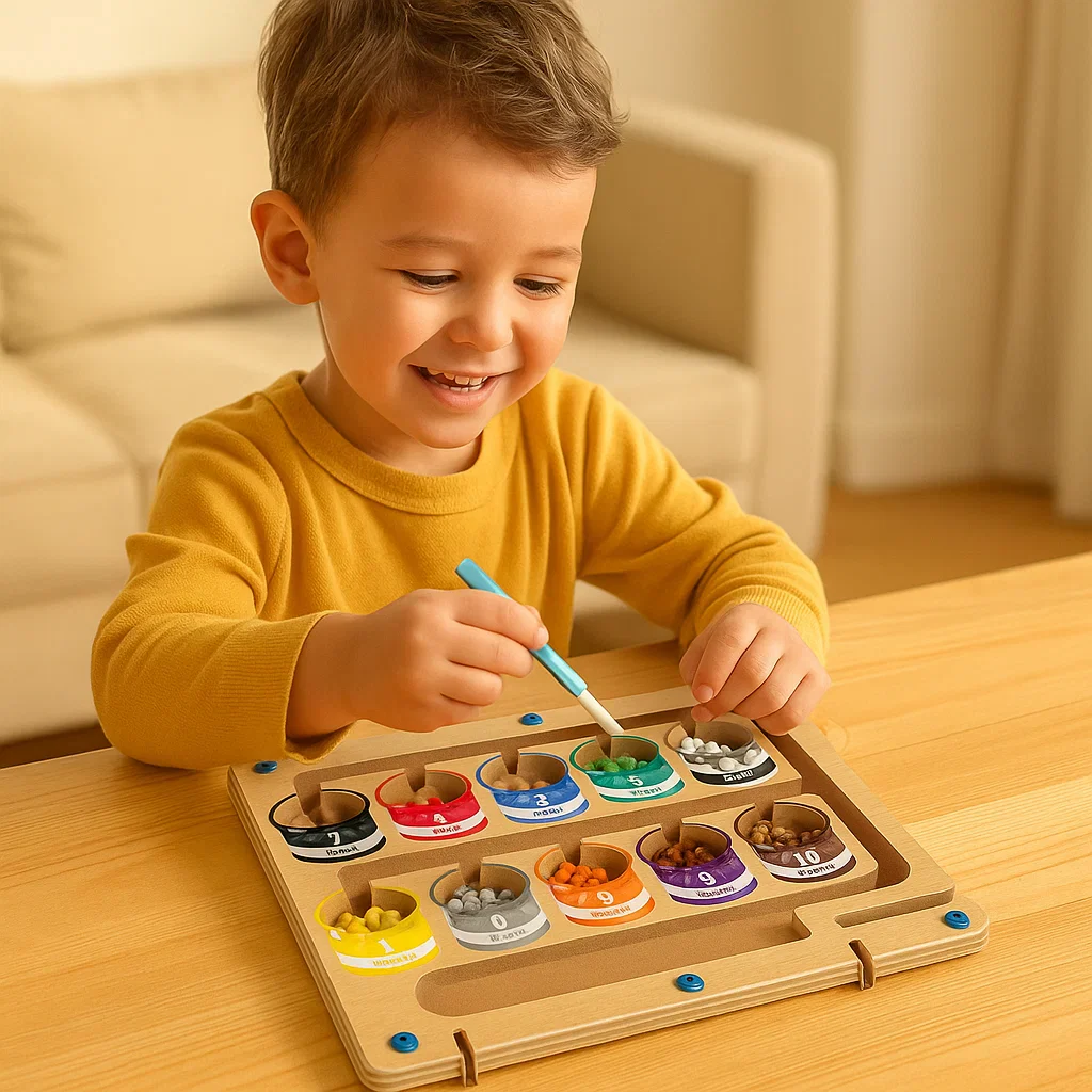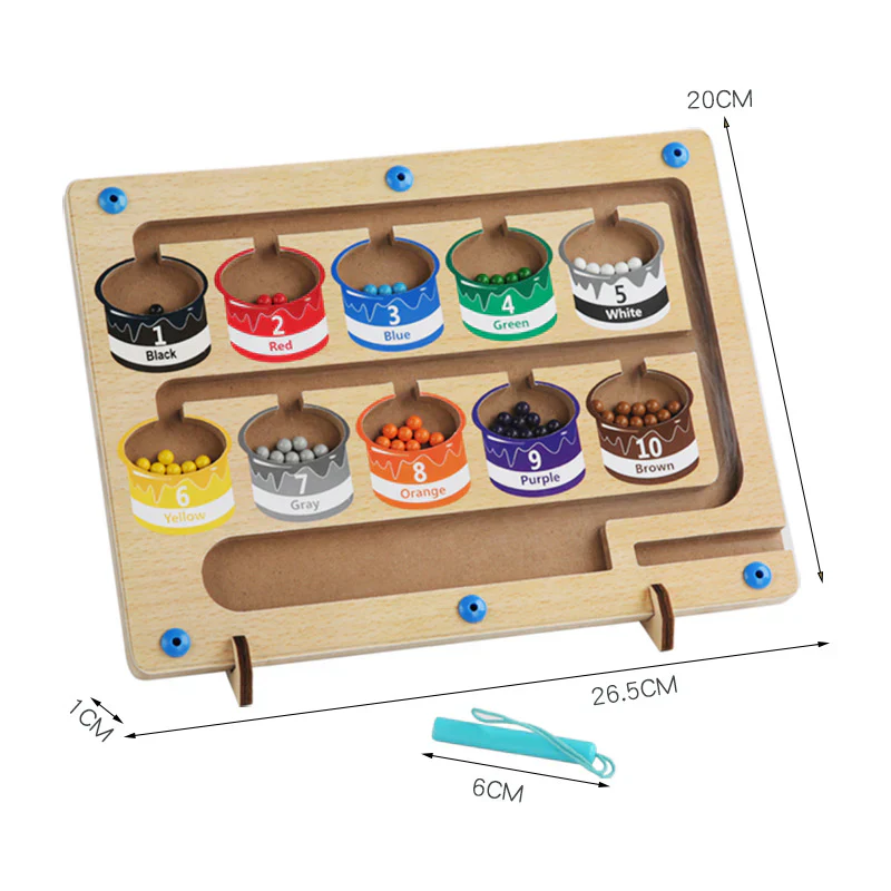 Transformez le temps de jeu en une expérience d’apprentissage captivante avec le tableau de comptage magnétique en bois, un jeu éducatif qui développe la reconnaissance des couleurs, les capacités de comptage et la coordination des mains. À l’aide d’un stylo magnétique, les enfants guident des perles colorées dans des seaux assortis, tout en développant des capacités essentielles d’apprentissage précoce par le biais d’une exploration ludique