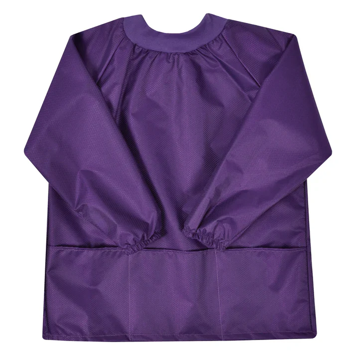 Couvre-tout en polyester lavable avec poche frontale. Idéal pour nos petits bricoleurs et artistes, parfait pour le retour à l’école! 100% polyester Laver à la machine à l’eau froide (30°C). Sécher au cycle délicat