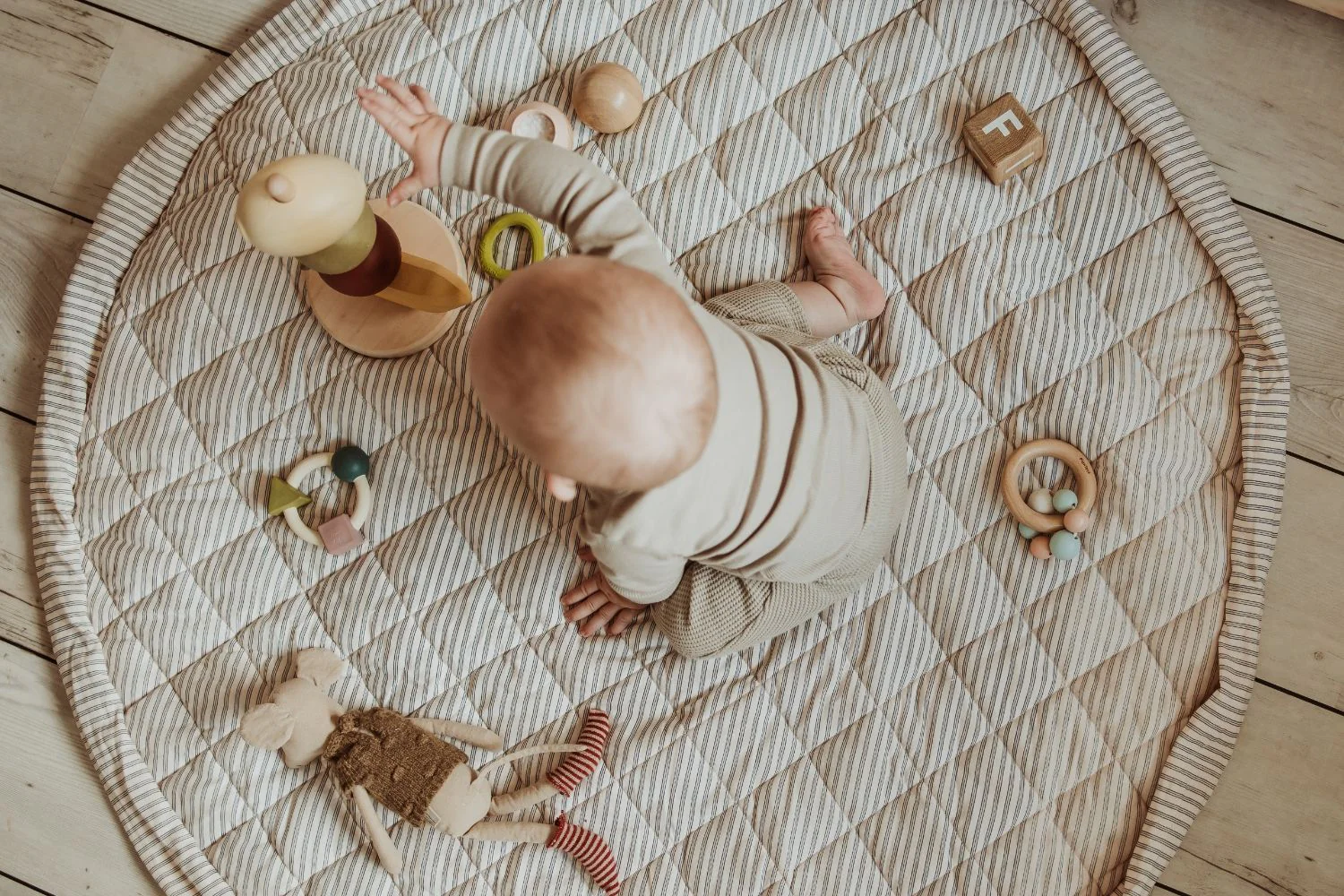 Avec un diamètre généreux de 120 cm et fabriqué à partir du meilleur coton organique GOTS, ce tapis de jeu privilégie non seulement le confort de votre bébé, mais également les valeurs d’un artisanat éthique et durable.