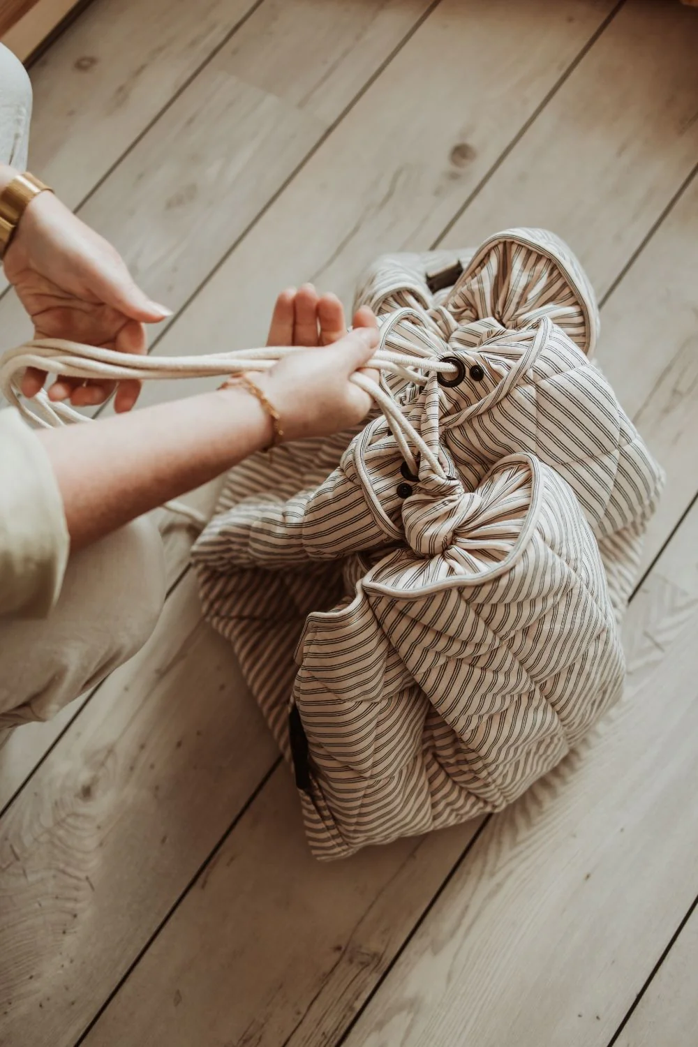 Découvrez l’ingéniosité du tapis de jeu pour bébé rembourré de Play & Go, maintenant enrichi du adorable rayé bleu. Cette création innovante se transforme aisément en sac de rangement pour jouets et en sac à couches, alliant commodité et style.