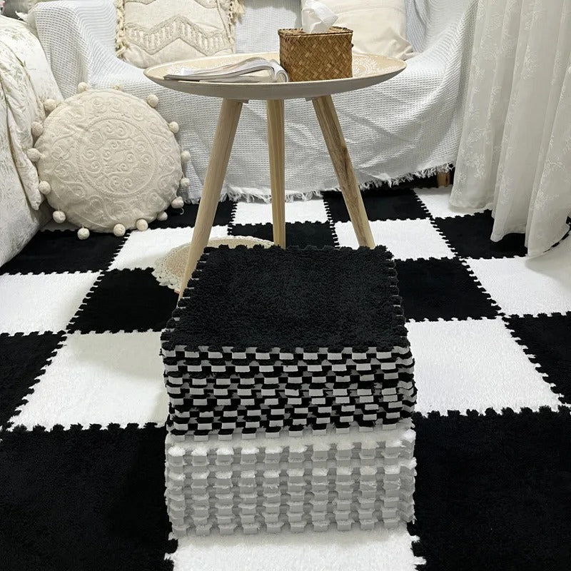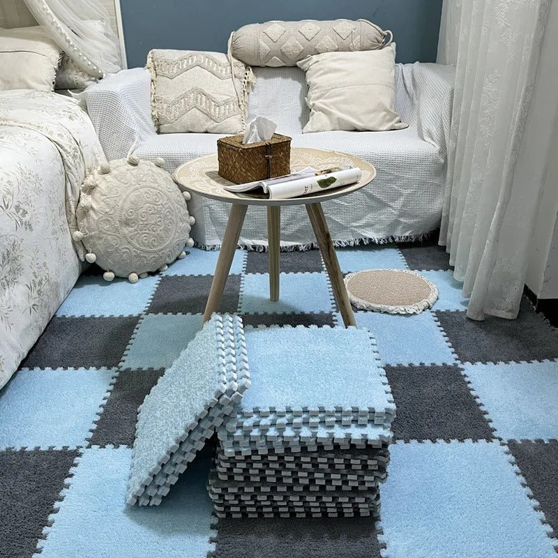 Découvrez notre tapis puzzle en peluche pour bébé, la solution idéale pour créer un espace de jeu doux, sûr et confortable pour votre petit trésor. Ces dalles de moquette carrées emboîtables avec une large gamme de couleur allient la douceur de la peluche à la résistance de la mousse EVA, offrant un environnement parfait pour le développement de votre enfant.