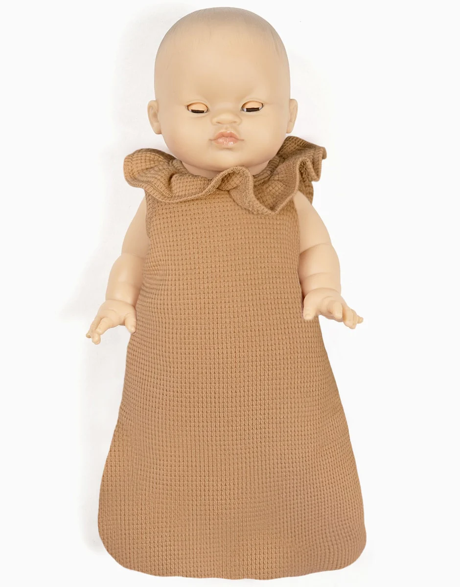Turbulette à colerette pour poupées Minikane Gordis 34 & 37cm. Turbulette 100% coton, vendue seule. Accessoire en tissu. Design, développement & confection MADE IN FRANCE. POIDS 0,04 kg DIMENSIONS 29 × 18 cm COULEURS UNIES Cassonade MATIÈRES Coton