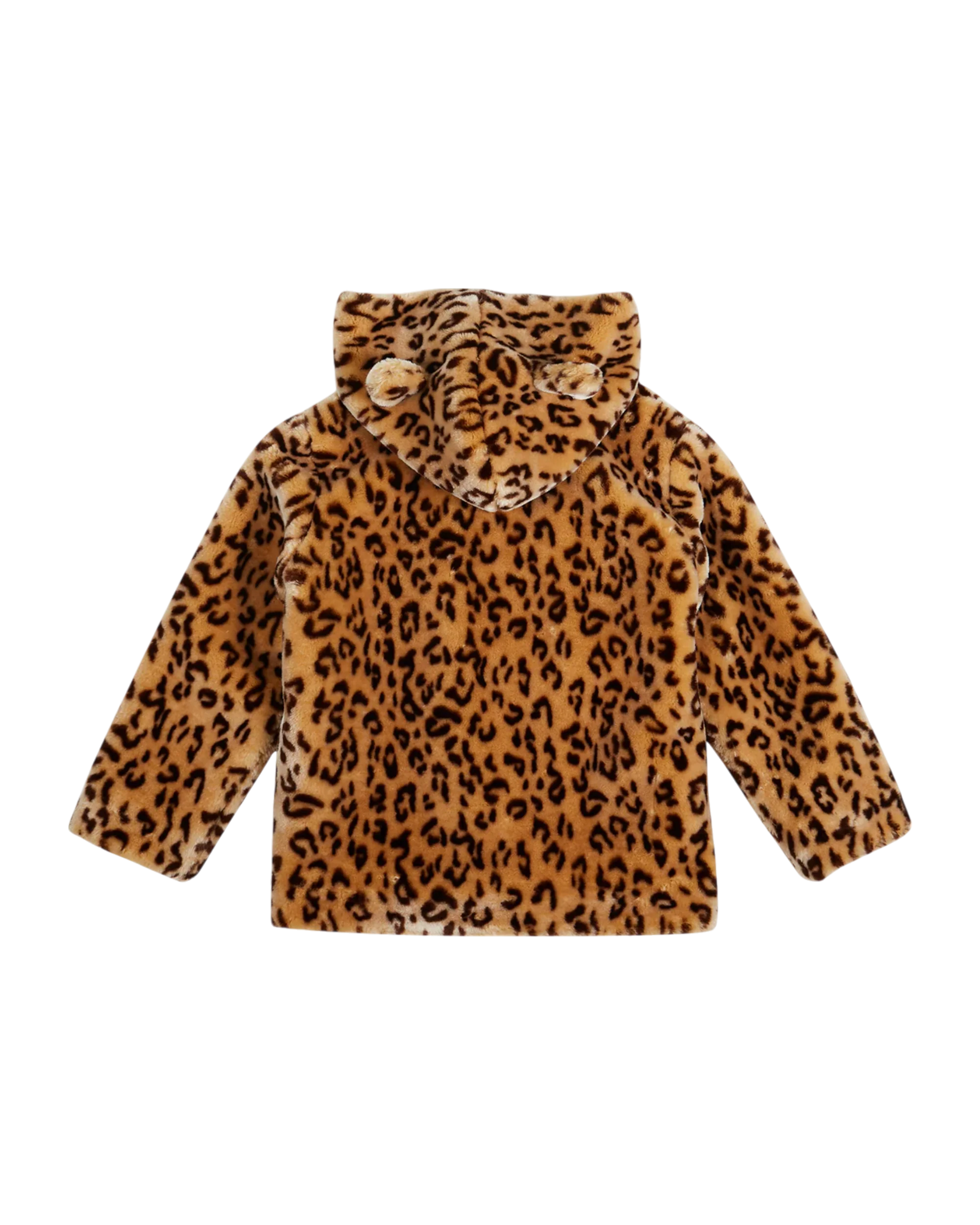 Veste 3/4 en fausse fourrure imprimée d’ocelles de léopard sur fond caramel. Le mot d’ordre pour cette veste est douceur.