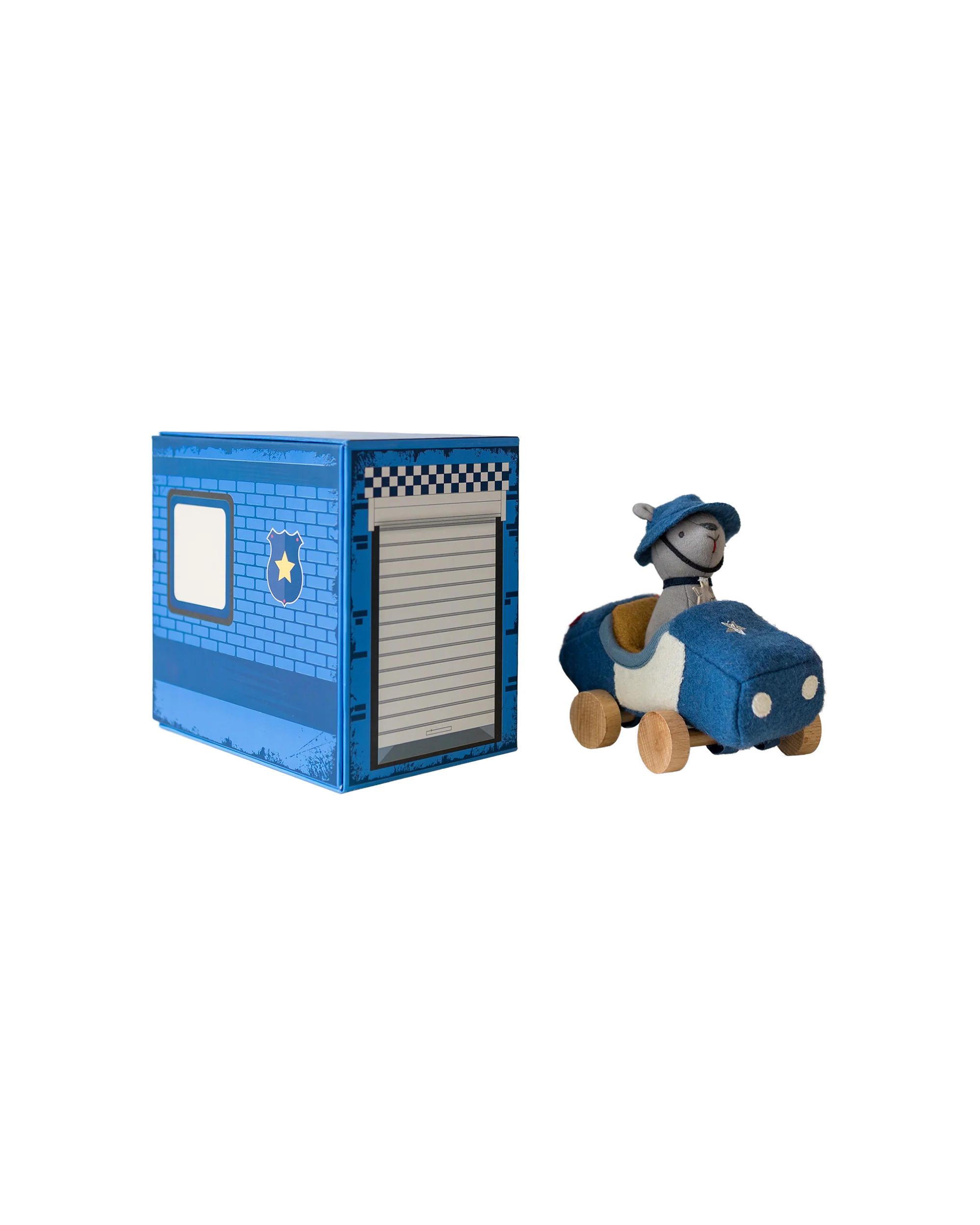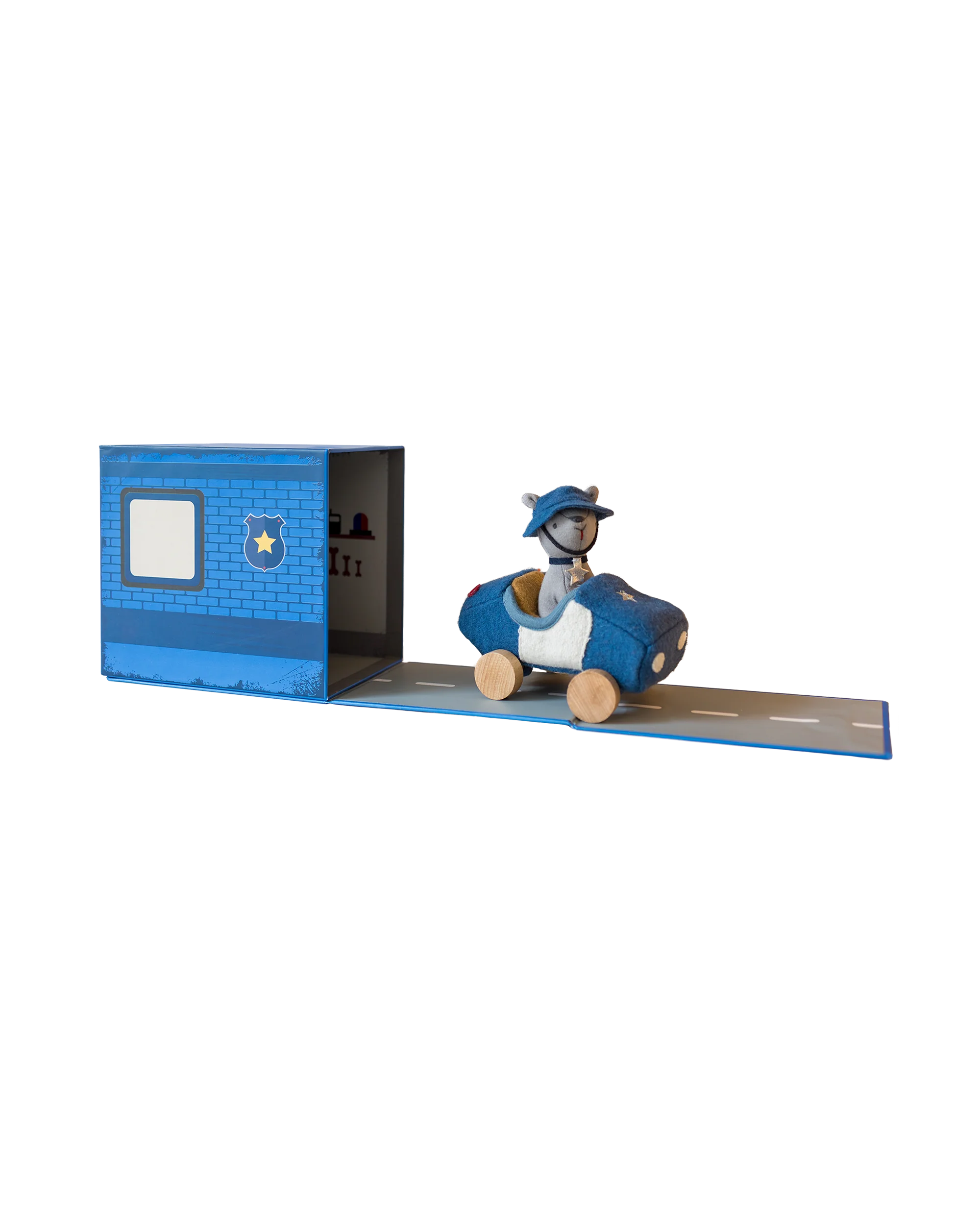 La boîte sur le thème du garage est conçue pour être dépliée et utilisée comme accessoire pour faire semblant de jouer.